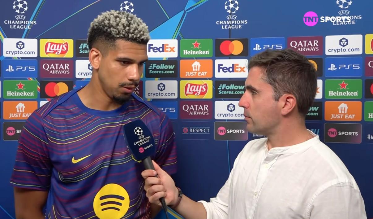 欧冠1/4决赛首回合,巴萨主场0-2输给马竞,巴萨后卫阿劳霍赛后接受了TNT体育巴西频道的采访。